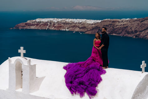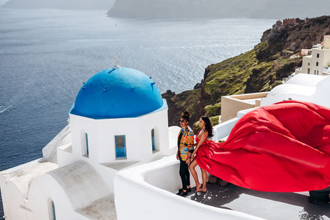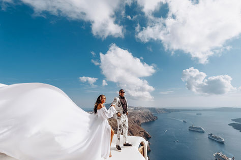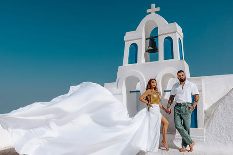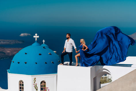 A love story photoshoot with a flying dress in Santorini is a dreamy and romantic idea. The stunning scenery of Santorini, with its blue waters and white buildings, provides a perfect backdrop for capturing the essence of love. The flying dress adds an element of whimsy and magic to the photos, creating a sense of fantasy and wonder. The movement of the dress caught in the wind captures the energy and passion of the couple, making for unforgettable and enchanting images. It is no wonder that Santorini is a popular destination for couples looking to capture their love in a unique and unforgettable way.